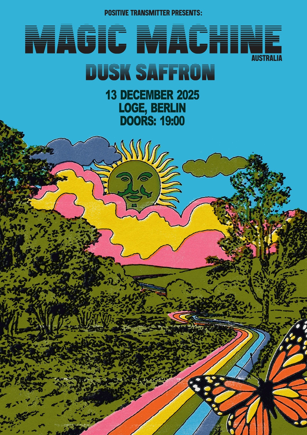 Magic Machine crash into Berlin with their explosive mix of psychedelic rock, garage energy, and fuzz-soaked blues — a sound that channels the wild spirit of psych’s golden era. Emerging from Sydney/Dharawal, the band has quickly become one of Australia’s most exciting live acts, touring with The Dandy Warhols, headlining their own packed East Coast run, and sharing stages with Frankie and The Witch Fingers, Death Valley Girls, and more. With a new album on the horizon and momentum at their back, they’re bringing their electrifying show to Berlin.